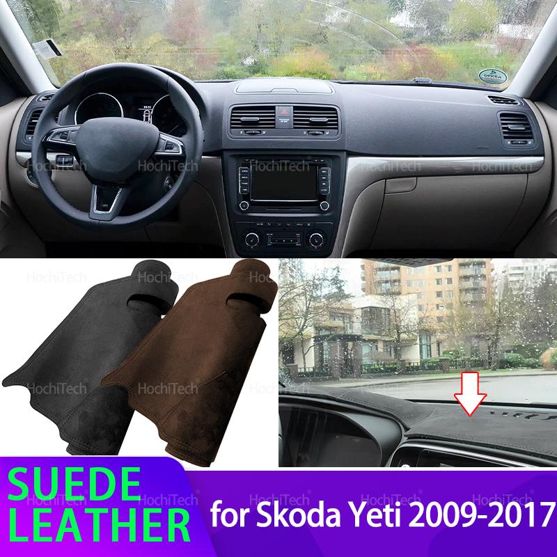 For Skoda Yeti 5L 2009-2017 Black Brown Suede Leather Dashmat Dash Mat Cover Dashboard Pad Sunshade Carpet Car Accessory