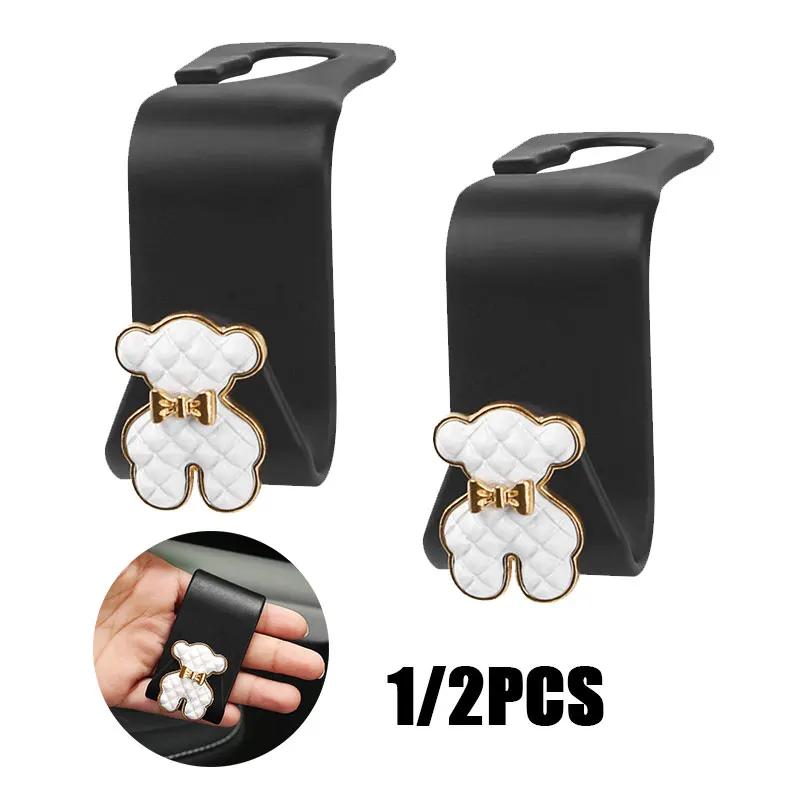 Cute Car Seat Back Hooks Diamond Camellia Flowers Decor Cartoon Bears Car Interior Storage Hook Handbag Hanging Holder Hook