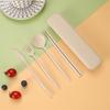 4Pcs/Set Portable Utensils With Box Healthy Eco-Friendly Wheat Straw Cutlery Reusable Chopstick Fork Knife Spoon Tableware Set