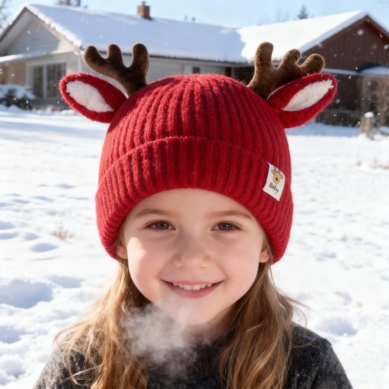 Reindeer Antler Baby Hat Soft Warm Knitted Winter Hat Perfect Fit Elastic Design Festive Christmas Toddler Cap