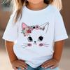 Girl Clothes Cute Floral Cat Pattern Summer Short Sleeve Tops Animal Cartoon Print Tees Fashion O-Neck Loose Children's Clothing