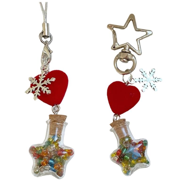 Winter Snowflake Flocking Christmas Phone Strap Keychain Charm for Holiday Spirit and Safety with Soft Sturdy Materials