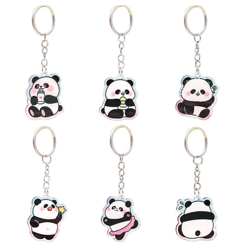 Pack Of 6 Panda Charm Keychain Handmade Acrylic Keyring Stylish Backpack Pendant for Animal Lovers and Gift Giving