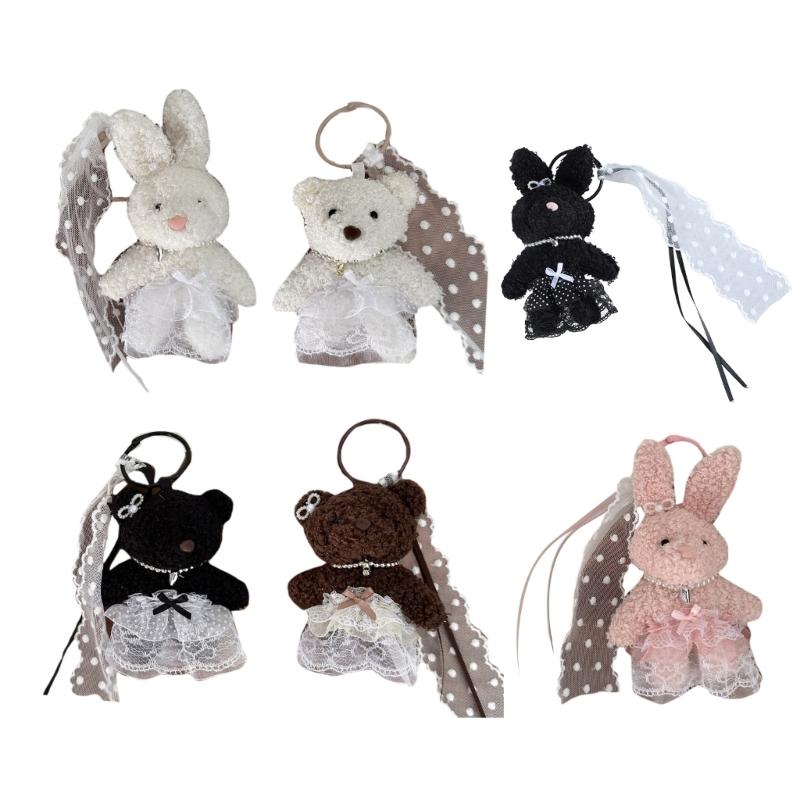 Elegant Plush Bear Keychain Charm Keyring Soft Furry Animal Pendant for Backpacks and Bags Fashion Accessory Decoration