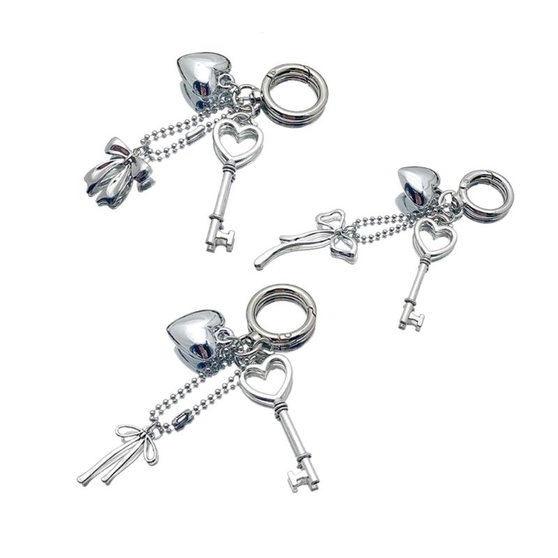 Elegant Metal Heart Keychain Bowknot Charm Unique Key Jewelry Fashion Accessory Fashionable Bag Pendant for Daily
