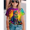 Kids Girls Clothes Cute Cat 3D Print Summer Short Sleeves Graphic T Shirts Outdoor Clothes for Children Cute Style Girl T-Shirt