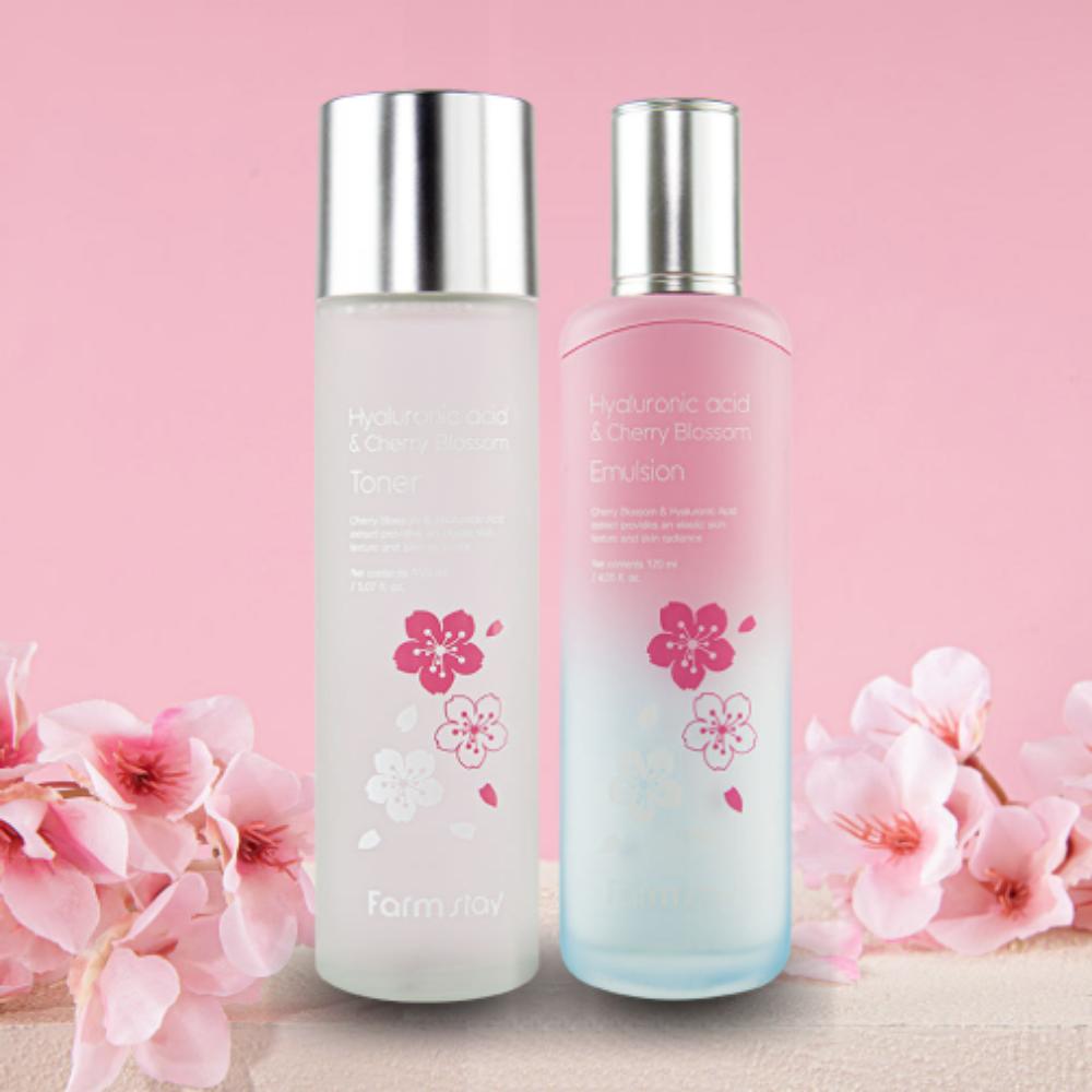 Farmstay Cherry Blossom Hydrating Glow Toner & Emulsion Set – 150ml + 120ml Moisture Duo