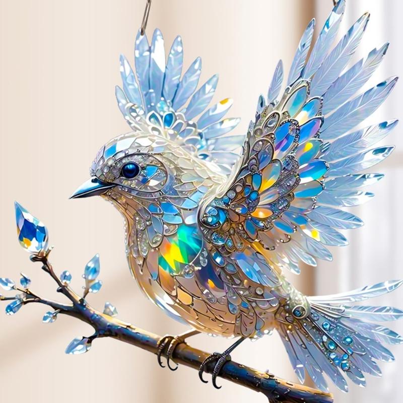 Colorful Acrylic Bird Pendant Crystal Like 2D Flat Hanging Ornament for Car Rear Mirror Charm and Window Decoration