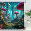 Fantasy Forest Mushroom House Shower Curtain Pretty Cartoon Pattern Polyester Fabric Kids Bath Curtain Bathroom Decor With Hooks