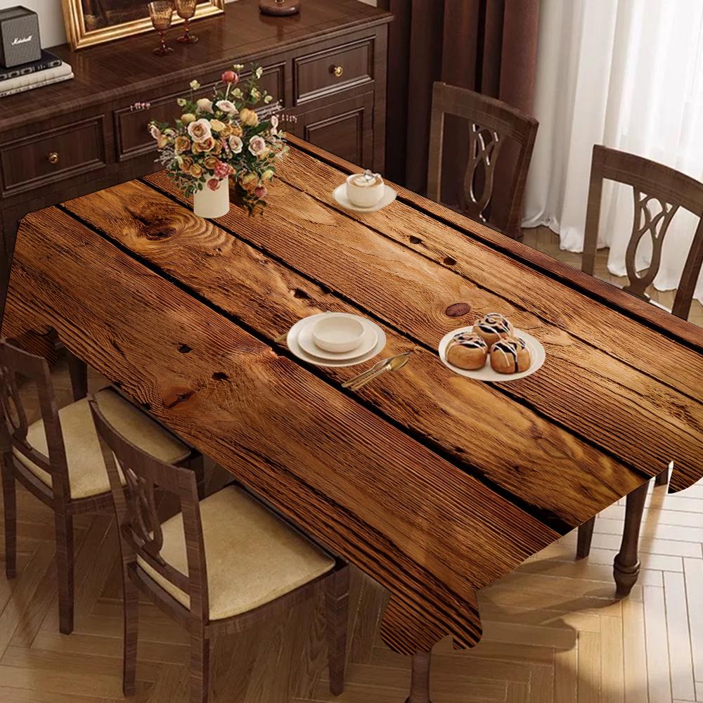 Beautiful Wood Rectangular Tablecloths Washable Wedding Party Kitchen Dining Living Room Birthday Decoration Table