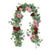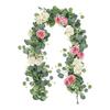 Artificial Eucalyptus Flower Garland with Rose Faux Floral Greenery Garland Fake Rose Flower Vine for Wedding Party Wall Backdrop Decor