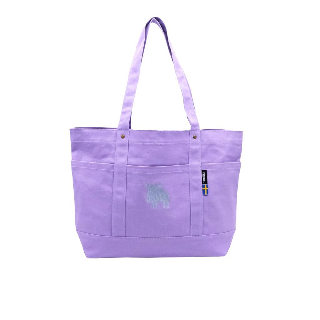 Moz Canvas Tote Bag, Large, 2024SS Limited Edition Color [Nordic, Swedish, Elk Design, Simple Casual Bag, Walking, Embroidered, A4 Size, Daily Use,