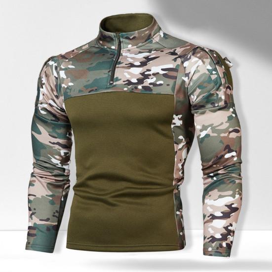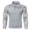 Men Fall Sweatshirt Patchwork Long Sleeves Camouflage Print Hip Hop Zipper Stand Collar Slim Fit Warm Wear-resistant Men Autumn Tops for Sports