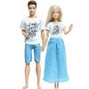 2 ensembles de tenues de Couple pour Ken pour poupées Barbie, accessoires de poupée, robe, costume, T-shirt et short, 1/6, 30cm, maison de poupées(PAS DE POUPÉES)