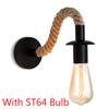 American Hemp Rope Wall Lamp Vintage Sconce Wall Lights Fixture E27 Industrial Decor Bedroom Light Indoor Lighting Retro