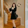 Robe d'automne en dentelle pour femmes, tenue élégante, tempérament français, revers, carreaux, taille Chic, manches bouffantes