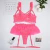 Aduloty Sous-vêtements Sexy en dentelle pour femmes, jupe bouffante pliante à trois couches, maille 3D, ensemble trois pièces, soutien-gorge, Lingerie érotique