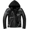 Veste de moto lourde de taille chinoise, manteau de motard de club, veste en cuir de vache véritable, vêtements d'équitation à capuche amovible pour hommes, veste en cuir pour hommes