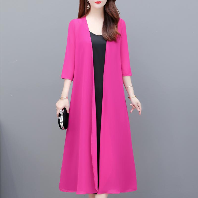 Manteau d'été en mousseline de soie pour femme, élégant, fin, décontracté, grande taille, Poncho Long d'été