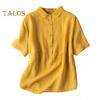 Chemise décontractée pour femmes, col de poupée, boutons, demi-patte de boutonnage, manches courtes, simple boutonnage, couleur unie, coupe ample