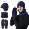 Ensemble Homme et Femme Hiver Chaud Doublé Polaire Protection Oreilles Chapeau Tricoté Écharpe Gants Tactiles Unisexe Extérieur Résistant au Froid Ensemble Chapeau Laine