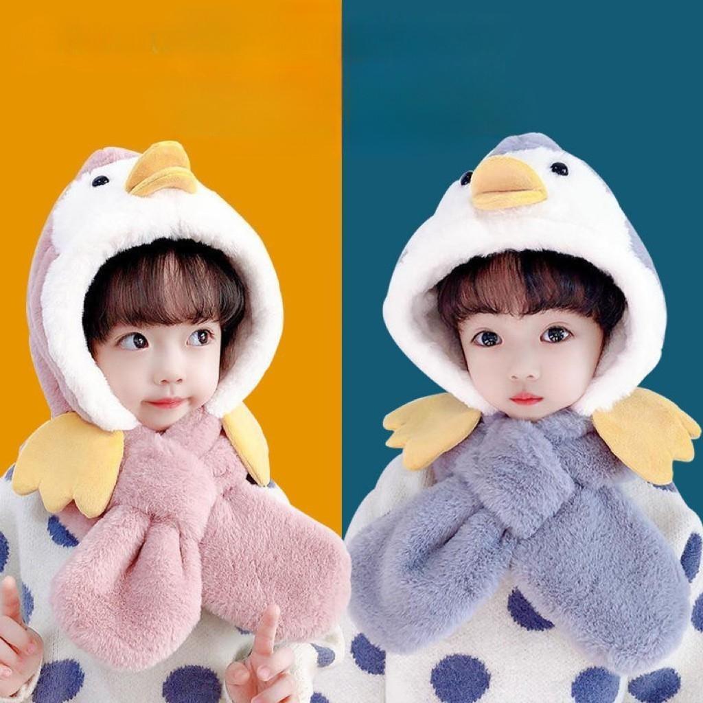 Hiver Chapeau d'enfant Écharpe Intégrée Garçons et Filles Épaissi Chaud Bébé Mignon Bébé Animal Coupe-vent Cache-oreilles
