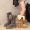 Chaussures pour Femmes Bottes Modernes à Plateforme Bottes Hautes à Bout Carré à Boucle de Ceinture Bottes d'Hiver Épaisses et Peluchées pour Dames Botas De Mujer