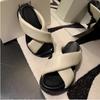 Mode 2024 Mode Pantoufles pour femmes à semelles épaisses Été Extérieur Sandales de plage à lanières croisées Pantoufles Sandales à plateforme antidérapantes surélevées