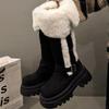 Bottes de Neige à Semelle Épaisse 2024 Bottes Fausse Cuissarde pour Femmes Nouvelles Bottes d'Hiver Peluche Chaudes Fourrées Bottes à Boucle de Ceinture Chaussures Décontractées en Coton