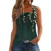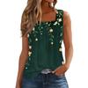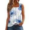 T-shirt imprimé sans manches à col carré plissé pour femme