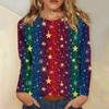 T-shirt à manches longues et col rond pour femme, décontracté et tendance, imprimé de Noël