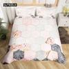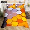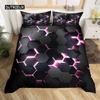 Honeycomb Duvet Cover Set Queen Size Geometry Hexagon Theme with Pink Blue Neon Lights Chic Comforter Cover for Boys Teen Man