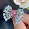 Set Necklace Earrings Ring Girl's Heart Pink Diamond Clear Sweet Light Luxury Versatile Premium Women's Jewelry