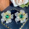 Ensemble de bijoux, accessoires, boucles d'oreilles à tige françaises, bagues de tempérament, collier émeraude, zircon de qualité supérieure, fleur pour femmes