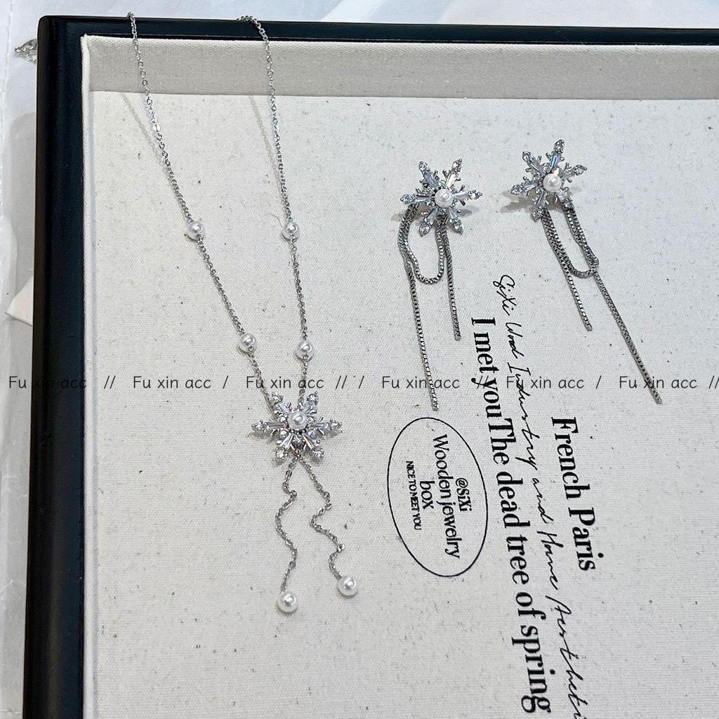 Elegant Snowflake Tassel Pearl Necklace & High-End Earrings Set (2024) - French Light Luxury Design for Women