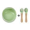 Ensemble d'alimentation pour bébé avec ventouse en silicone: Bol à escargots, cuillère et fourchette avec manches en bois, facile à nettoyer.