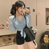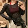 2025 printemps été col en V protection solaire fin paresseux ample manches longues t-shirts décontracté ample uni perspective devant et dos double haut pour femmes t-shirt