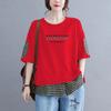 Tops Women Cotton Summer Large Size Fake Two Pieces T-shirt Polo Neck Loose Printed Casual Pullover T-shirt Top