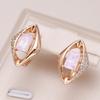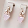 1 Paire Boucles d'Oreilles Pendantes Pierre Rose Coupe Triangle Couleur Dorée Bijoux Femme Mariage Fête