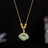 Collier Cadenas de Paix en Argent 925 avec Jade Hetian & Chaîne Claviculaire en Or 14K, orné d'un Pendentif Cadenas de Longévité Ruyi Rétro pour Femmes.