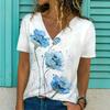T-shirt Oversize à Manches Courtes et Col en V pour Femmes - Mode Ladies T-Shirt Imprimé Fleur Libellule 3D - Haut Vêtements Décontractés