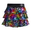 Jupe de Danse à Volants Étagés pour Filles, Short, Paillettes Métalliques Brillantes, Taille Élastique, Culotte, Costume de Scène de Danse