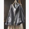 Chemise à capuche rayée en fil de coton double couche pour le printemps pour femmes, veste chemise à carreaux à manches longues