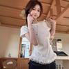 Women's Slim Fit Korean Style Ruffle Lace Patchwork Knitted T-Shirt