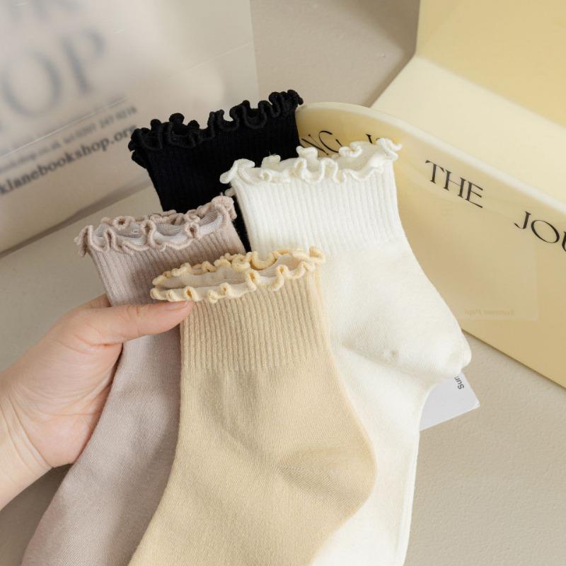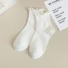 Chaussettes mi-mollet pour femmes, printemps, nouvelles, polyvalentes, couleur unie, dentelle champignon