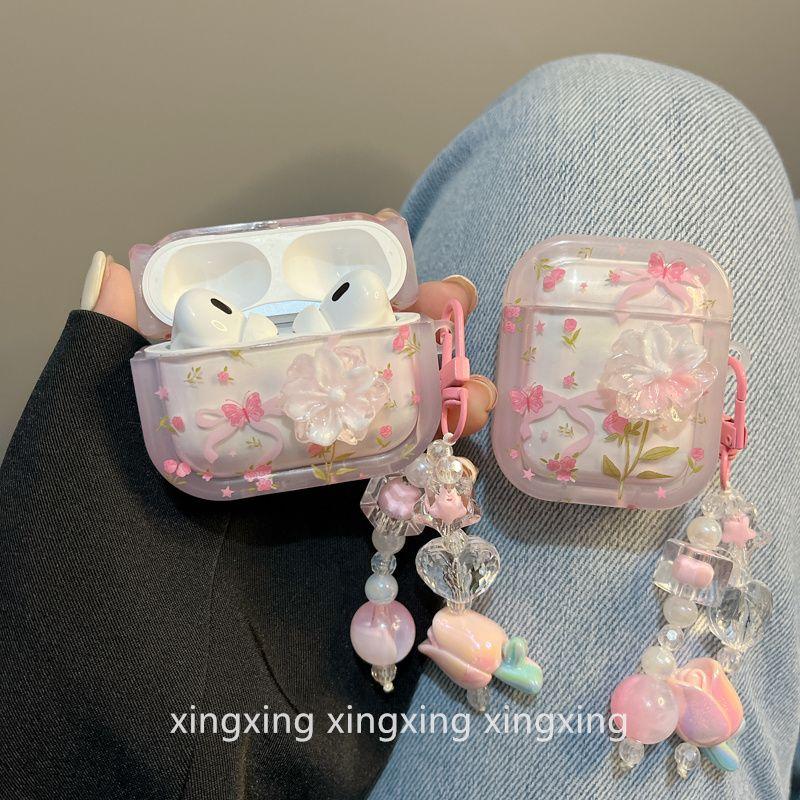 INS Girly Heart Pink Flower Butterfly for Airpods4 Protective Case Apple Bluetooth Airpodspro2 Earphone Case 3 Generation