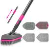 NEWE Brosse de pont 2 en 1 Brosse de nettoyage pour le bain avec manche long 128cm Caoutchouc Pon Brosse de bain avec barre raclette pour Nettoyage et Terrasses Salles de bain,