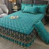 Ensemble 3 pièces Jupe de lit princesse style coréen, Couvre-lit à bordure en dentelle européenne avec taies d'oreiller, Protection de literie contemporaine en dentelle brodée
