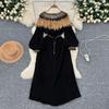 Vintage Court Style Autumn Heavy Industry Sequined Embroidered Long Pleated Bubble Sleeve Dress Women's Pleated Skirt