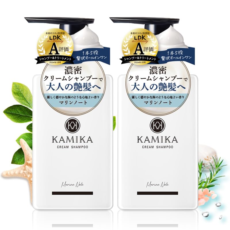 KAMIKA Crème Note Marine 400g Shampooing Hydratant pour le Cuir Chevelu Vieillissant Cheveux Abîmés Beauté de la Tête Contient Hyaluronique et Chaleur Shampooing, Parfum, (2 bouteilles)